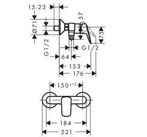 Hansgrohe Focus S egykaros zuhanykeverő falsíkon kívüli szereléshez