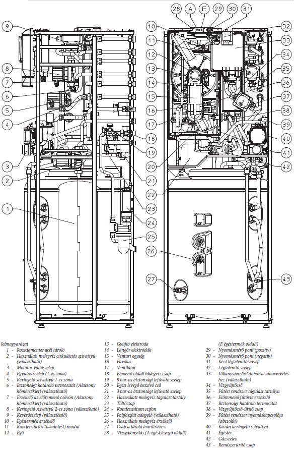 Az Immergas HERCULES Condensing 32 ErP álló hőközont fűtési és HMV oldali hőcserélője is rozsdamentes acélból készült.