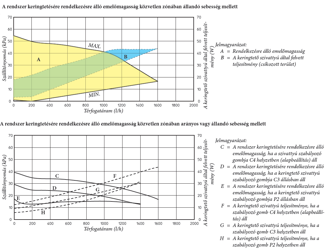 Keverőszelepes fűtési kör szivattyújának jelleggörbéje (külön rendelhető):