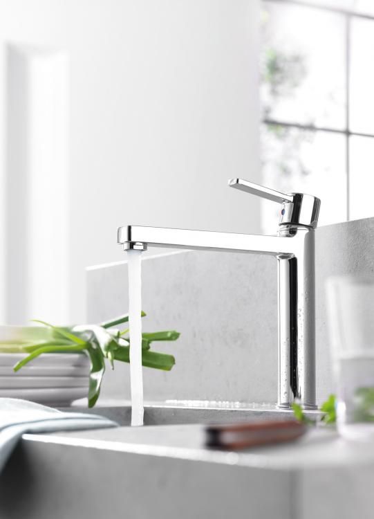 A KLUDI Zenta csaptelepei lekerekített és éles sarkainak kombinációjával kiválóan illeszkedik fürdőszobájába.
